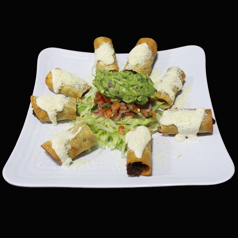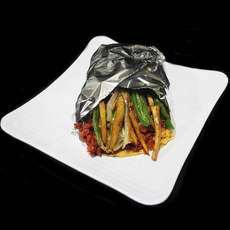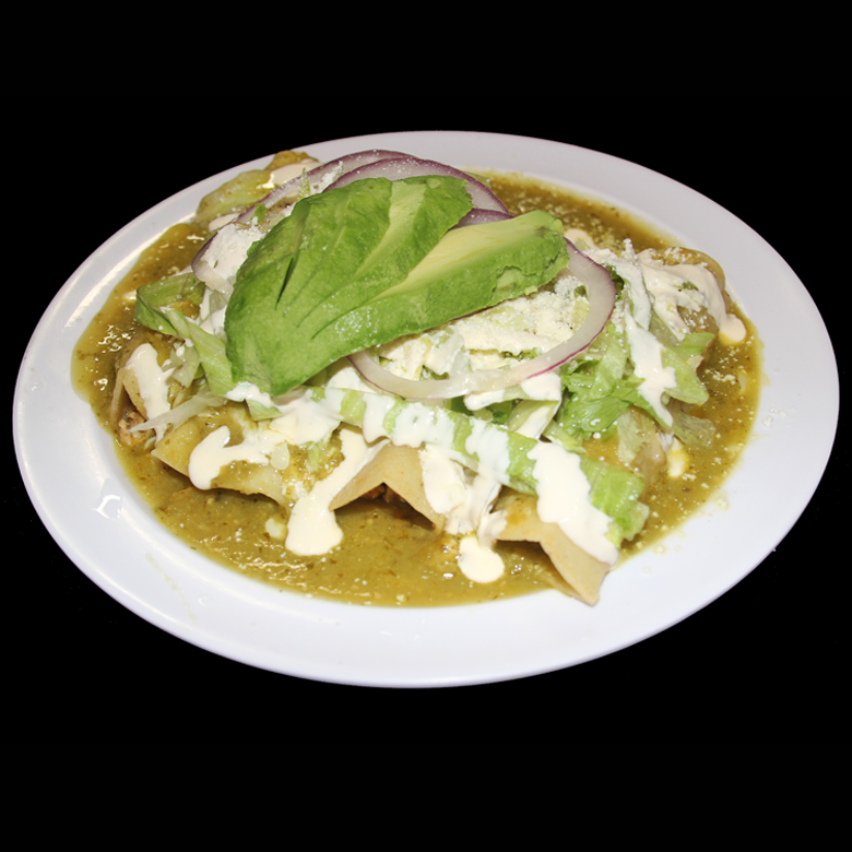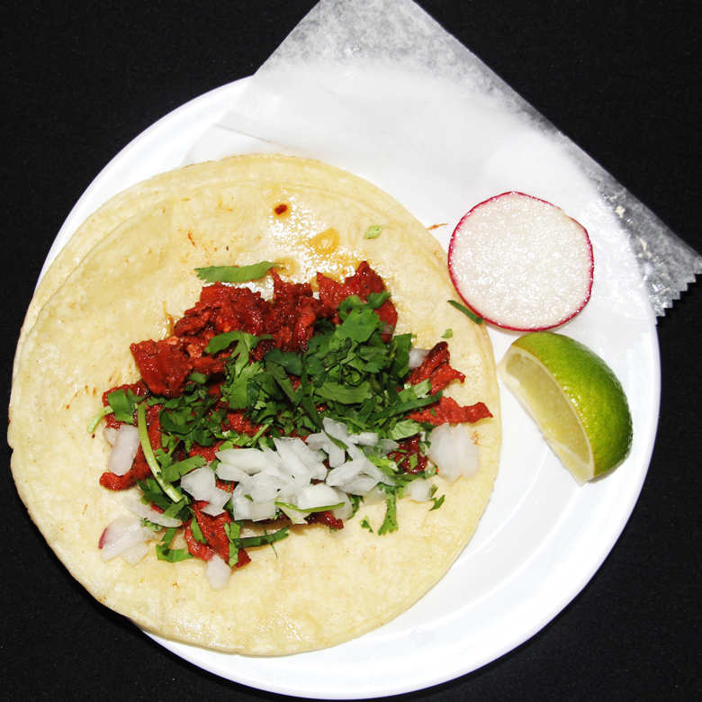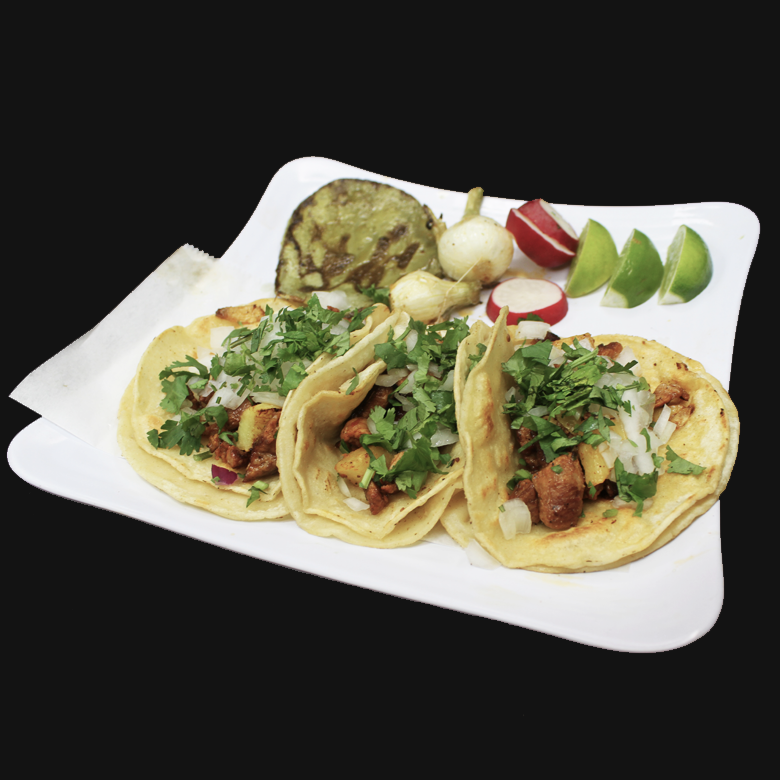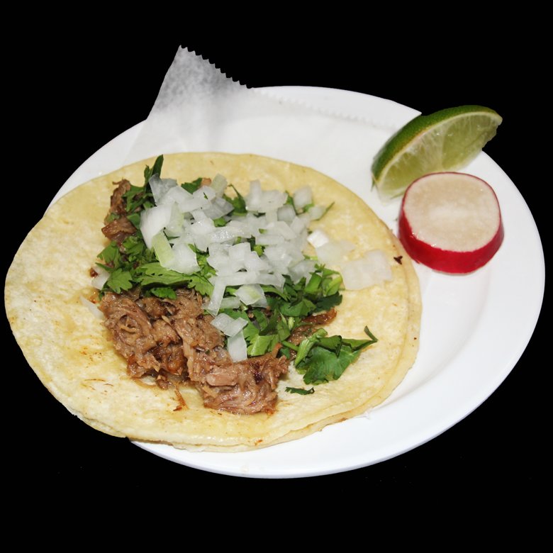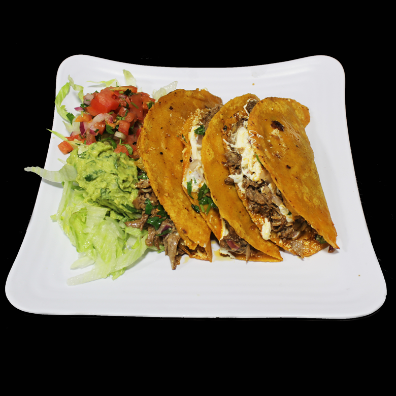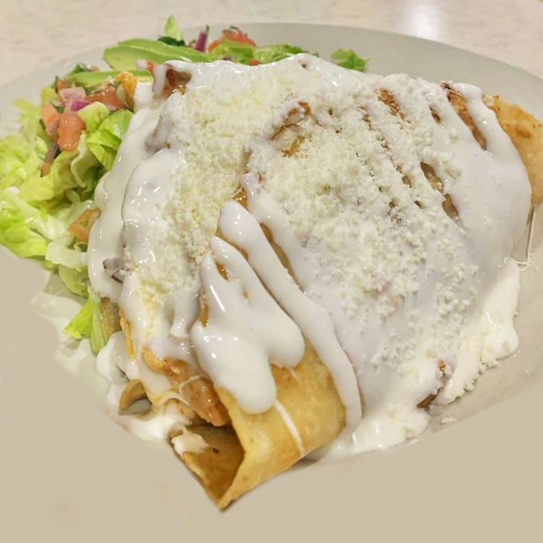 Hand rolled Corn fried tortilla, lettuce, sour cream, cotija cheese, aguacate side, chicken, pork or beef.