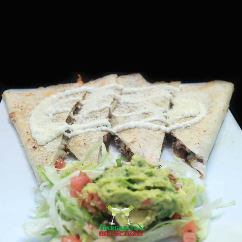 Flour tortilla, lettuce, onion, sour cream, melted cheese, pico de gallo, avocado side With meat