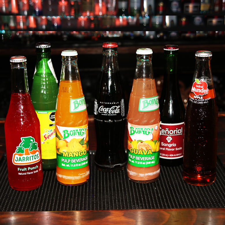 Coca cola mexicana, Sidral, Jarritos, Sangria senorial, Boing, Squirt.