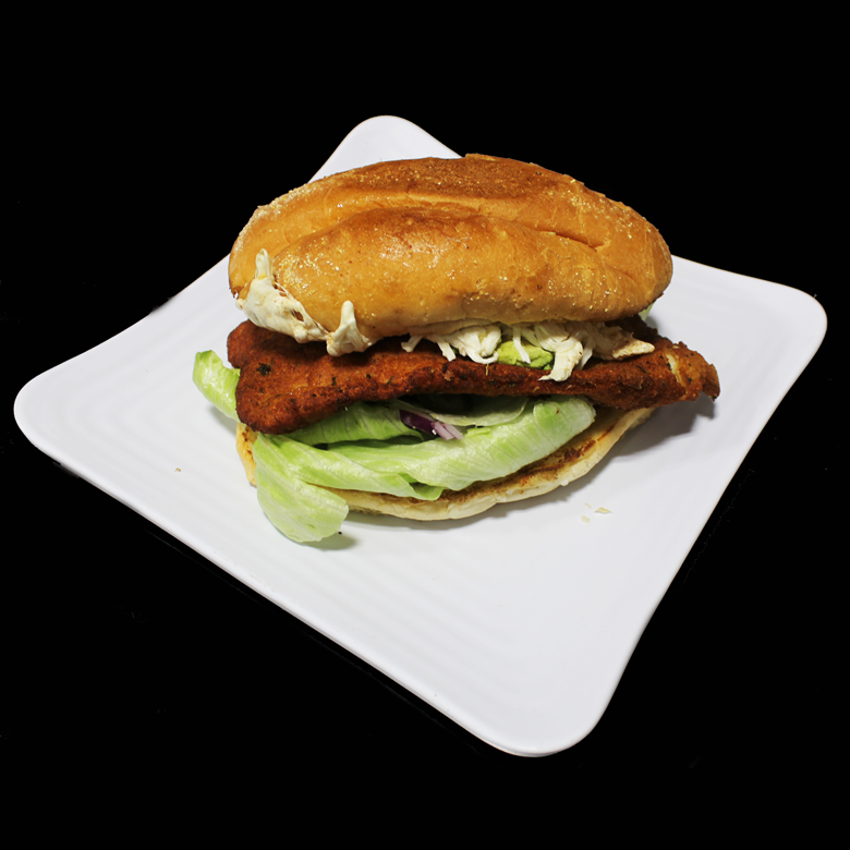 Beans, lettuce, tomatoe, onion, oaxaca cheese, jalapeño, mayonaise, breaded chicken
